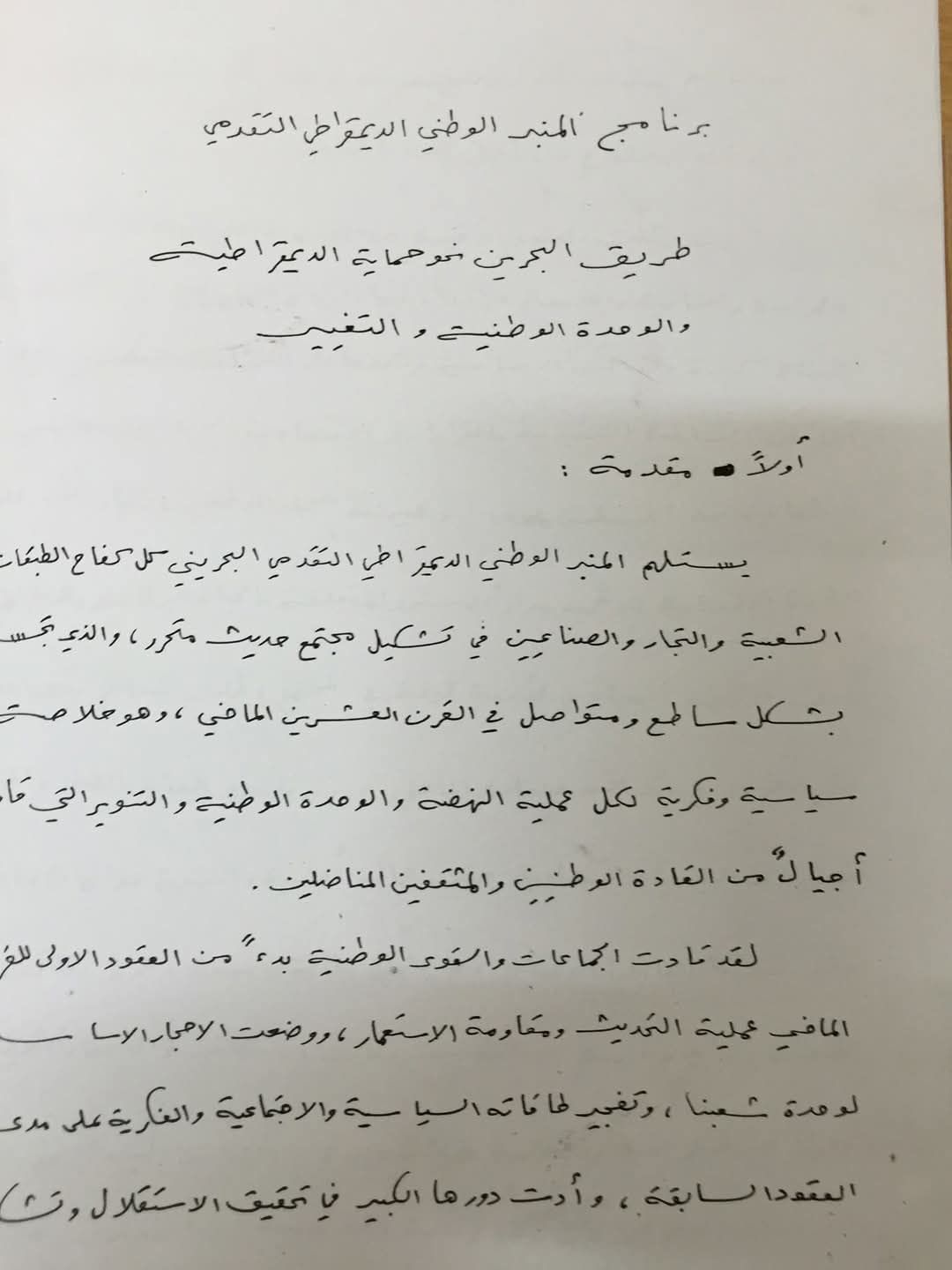صور بخط يد عبدالله خليفة واضع برنامج المنبر التقدمي