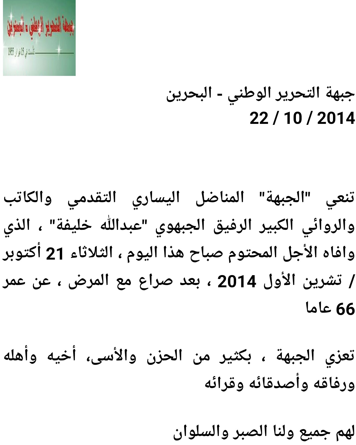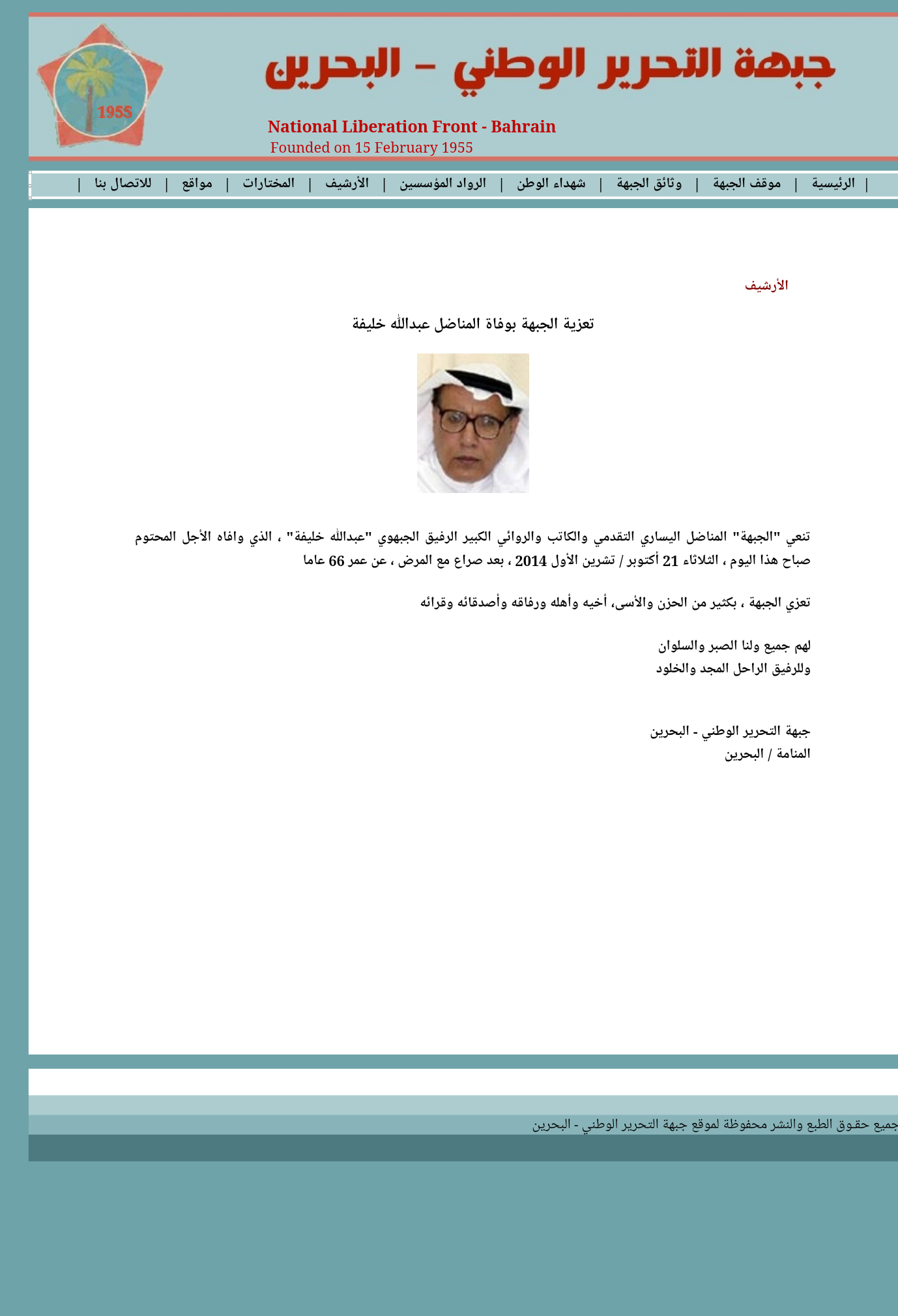 #عبدالله_خليفة #المنبر_التقدمي #جبهة_التحرير_الوطني_البحرين